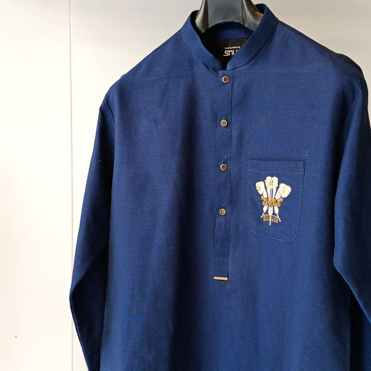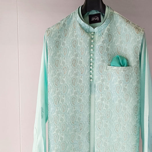 Aqua Embroidered Long Waistcoat with Paisley Kurta Trouser