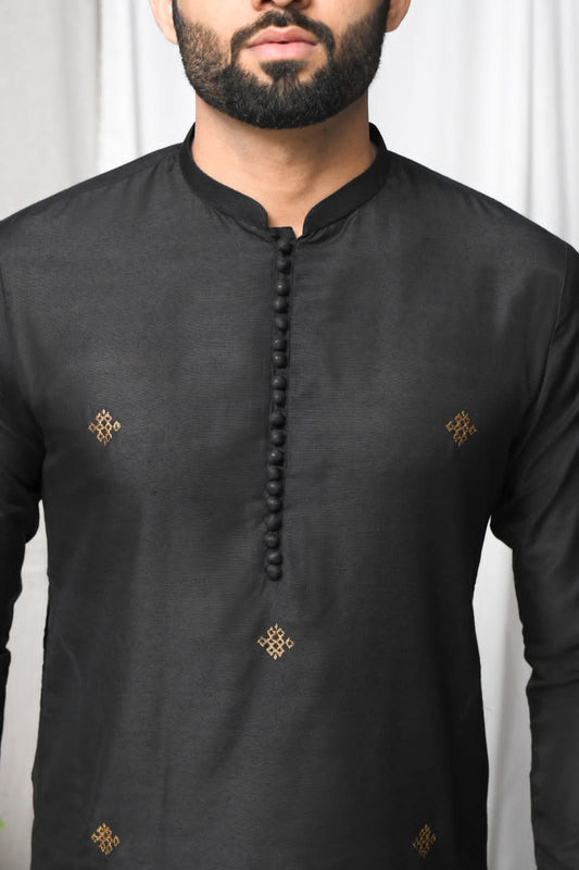 Army Green Zipper Patched Kurta Trouser with Black Quilted Waistcoat