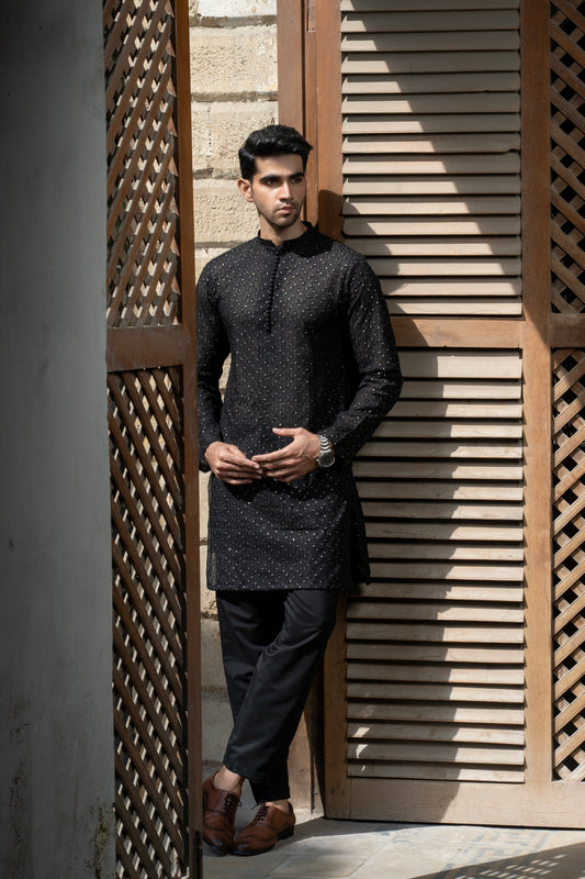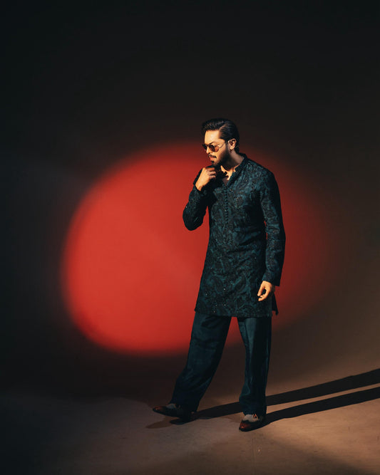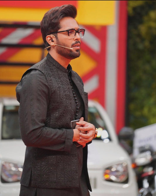 Experience Star Style: Snug Sequin Kurta Trouser Set - Inspired by Fahad Mustafa!