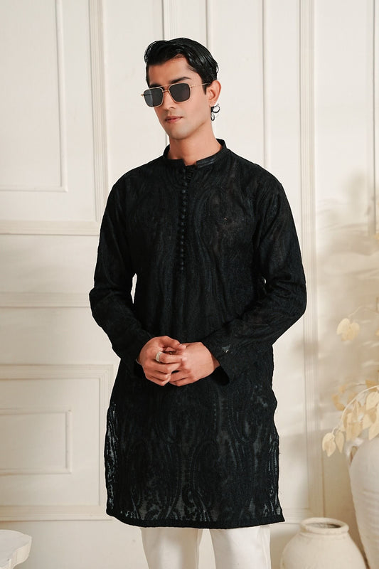 Artisan Black Embossed Kurta Trouser.