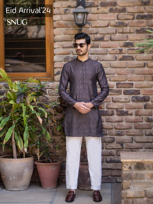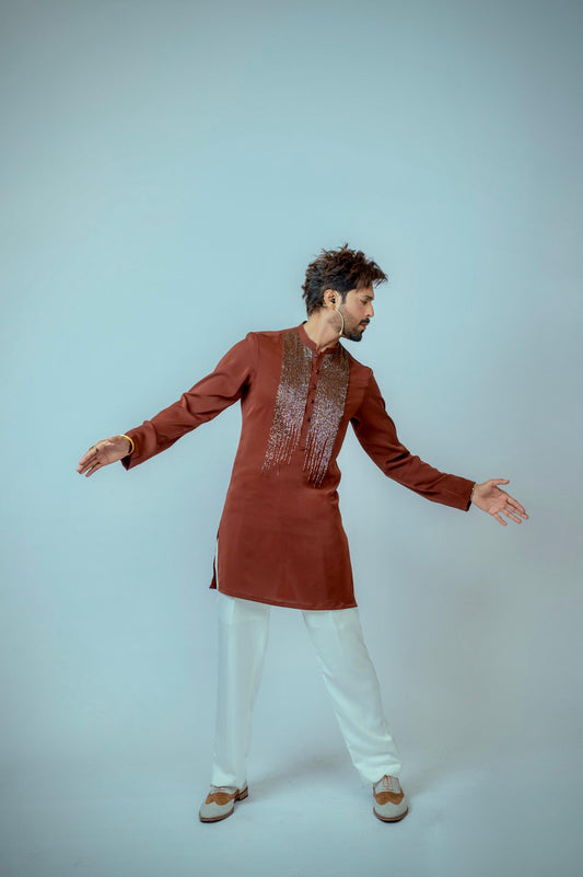 Snug's Tobacco Brown Hand-Embroidered Kurta Trouser Set: As Worn by Fahad Mustafa - Elevate Your Style.