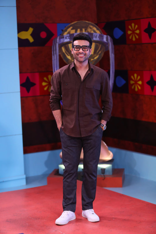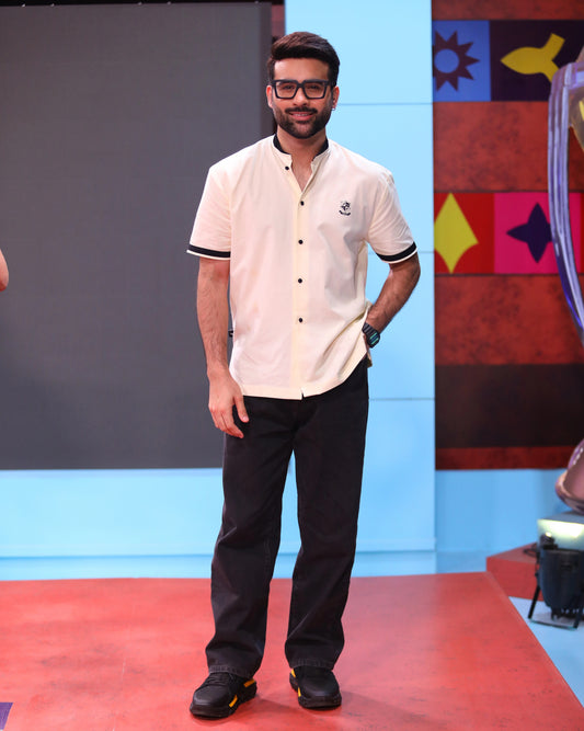 Black Linen Patched Shirt.