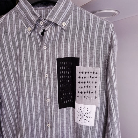 Linen Cross Striped Patch Shirt