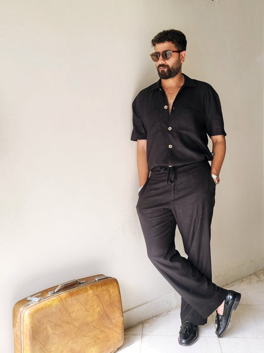 Black Drop Shoulder Linen Shirt.