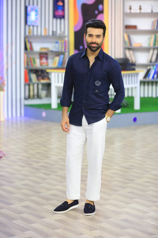 Navy Blue Linen Shirt