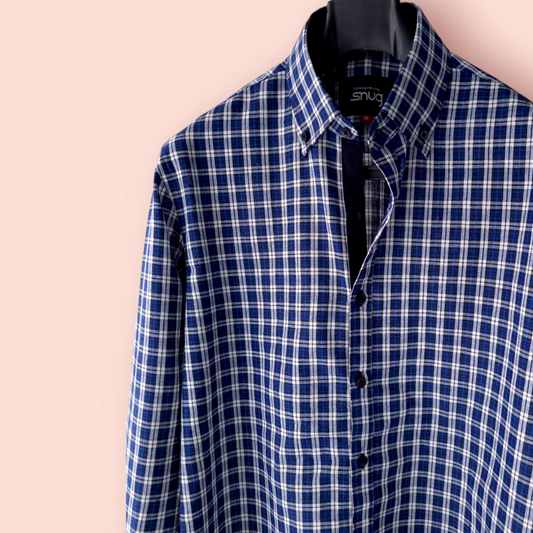 Blue Linen Checkered Shirt.