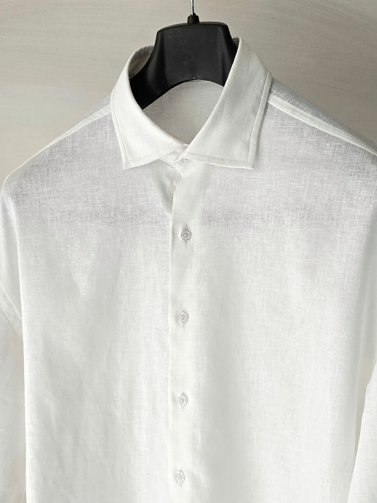 White Linen Drop Shoulder Shirt.