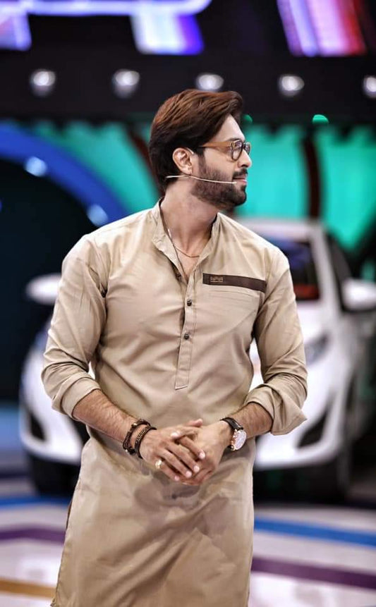 Snug's Tobacco Brown Hand-Embroidered Kurta Trouser Set: As Worn by Fahad Mustafa - Elevate Your Style.