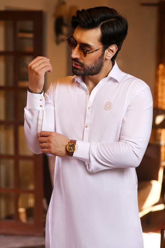 Chest Embroidery Qamiz Shalwar With Broad Stripes Blazer