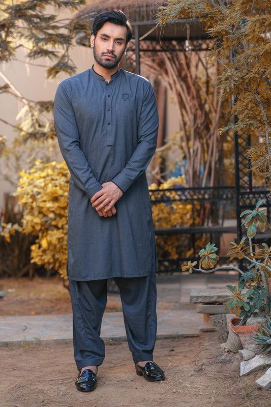 Grey Embroidered Wash And Wear Qamiz Shalwar