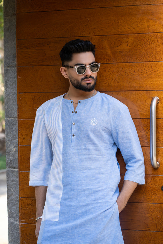 Breezy Sky Blue Linen Kurta Trouser Set by Snug